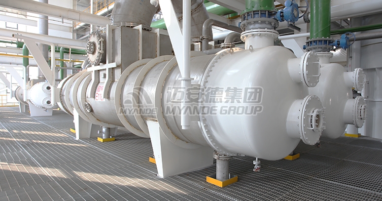 邁安德浸出器冷凝器主要用于植物油浸出車間,冷凝浸出器內(nèi)部揮發(fā)出的溶劑及進料帶進的空氣、水蒸氣等二次蒸汽,保持系統(tǒng)微負壓,該設備屬于管殼式換熱器。