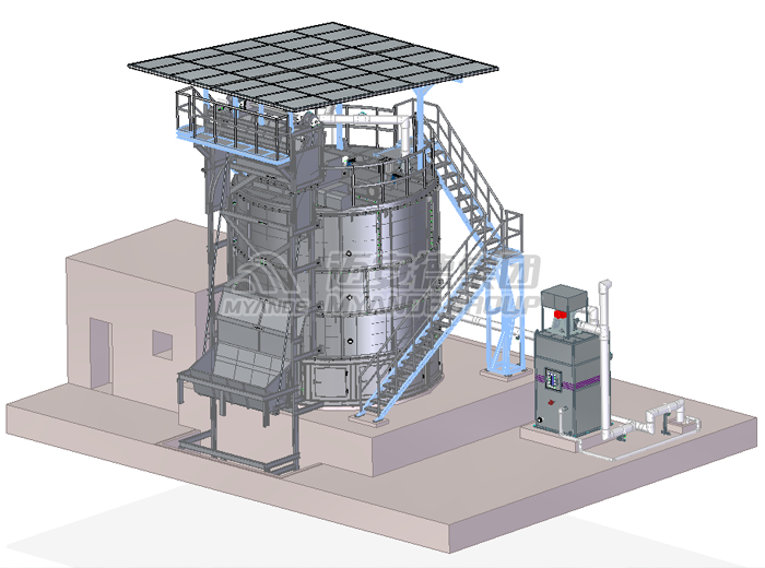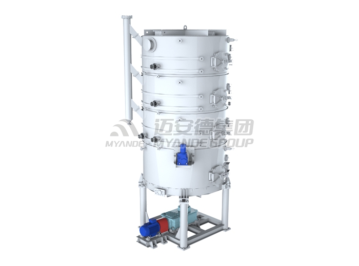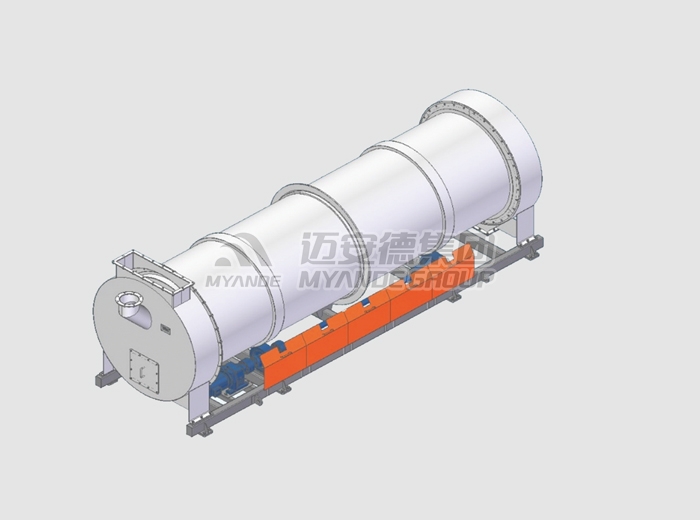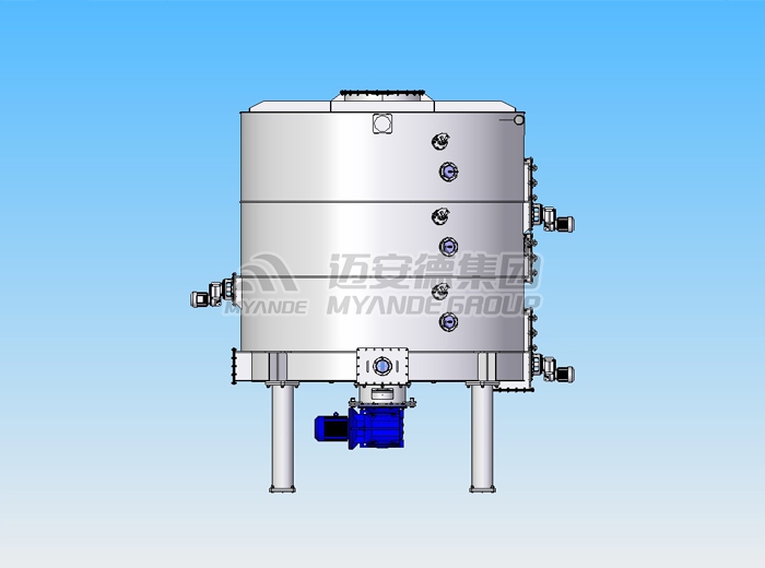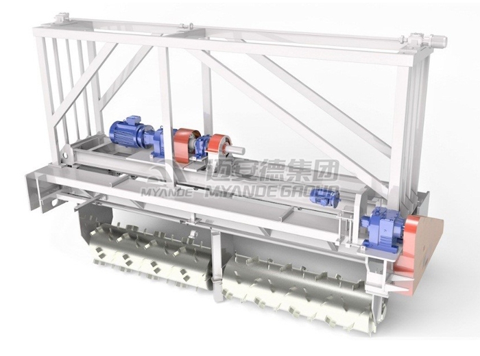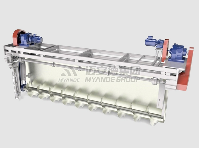 菌液或者水由泵通過霧化噴嘴噴吹進混合機內,其轉子上的槳葉沿軸向和周向按一定的規律交錯排列,且葉面與轉子軸線呈一定的角度,從而使葉面之間形成一個螺旋面。動力通過鏈輪由電機傳給轉子,轉子工作時一邊帶動物料不停地翻轉,物料與液體混合,一邊將物料向出料口推進,最終達到接種均勻的目的。
